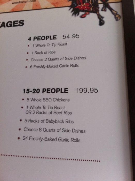 ** Price varies based on selections **Select 3 BBQ itemsSelect 6 Signatures sides (1-quart ea.)Includes 24 Freshly-Baked Garlic Rolls